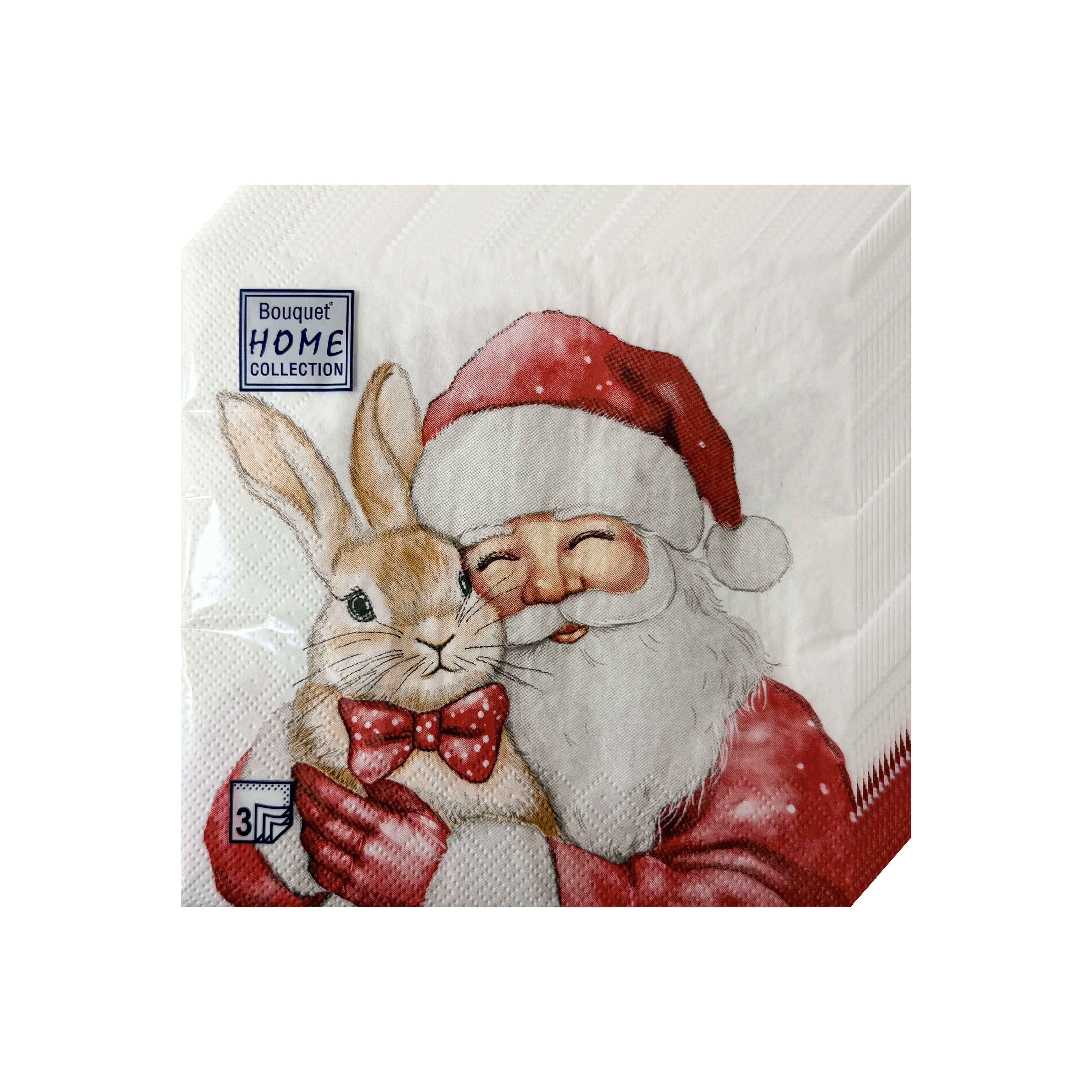 НГ салфетки 3-сл 33х33 Дед Мороз с кроликом  /20
