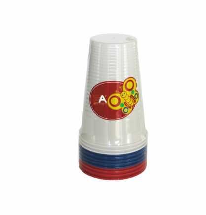 В наборе 3 белых стакана, 4 синий и 3 красных. Объем 0,2 л