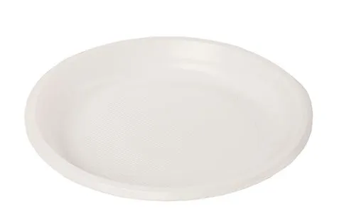Одноразовые тарелки изготовлены из высококачественного пластика. Материал экологически безопасен, не выделяет токсических веществ при взаимодействии с горячей пищей.  Предназначены для сервировки горячих и холодных блюд. Диаметр 170 мм