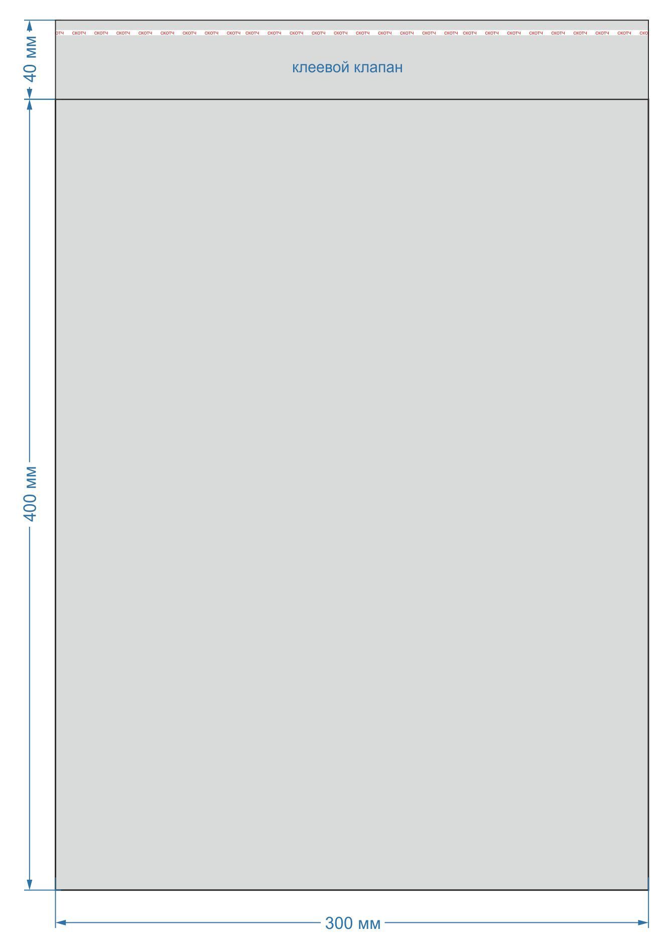 Размер пакета: 300х400 мм, с клеевым клапаном 40 мм. Толщина: 25 мкм. В упаковке 100 штук.