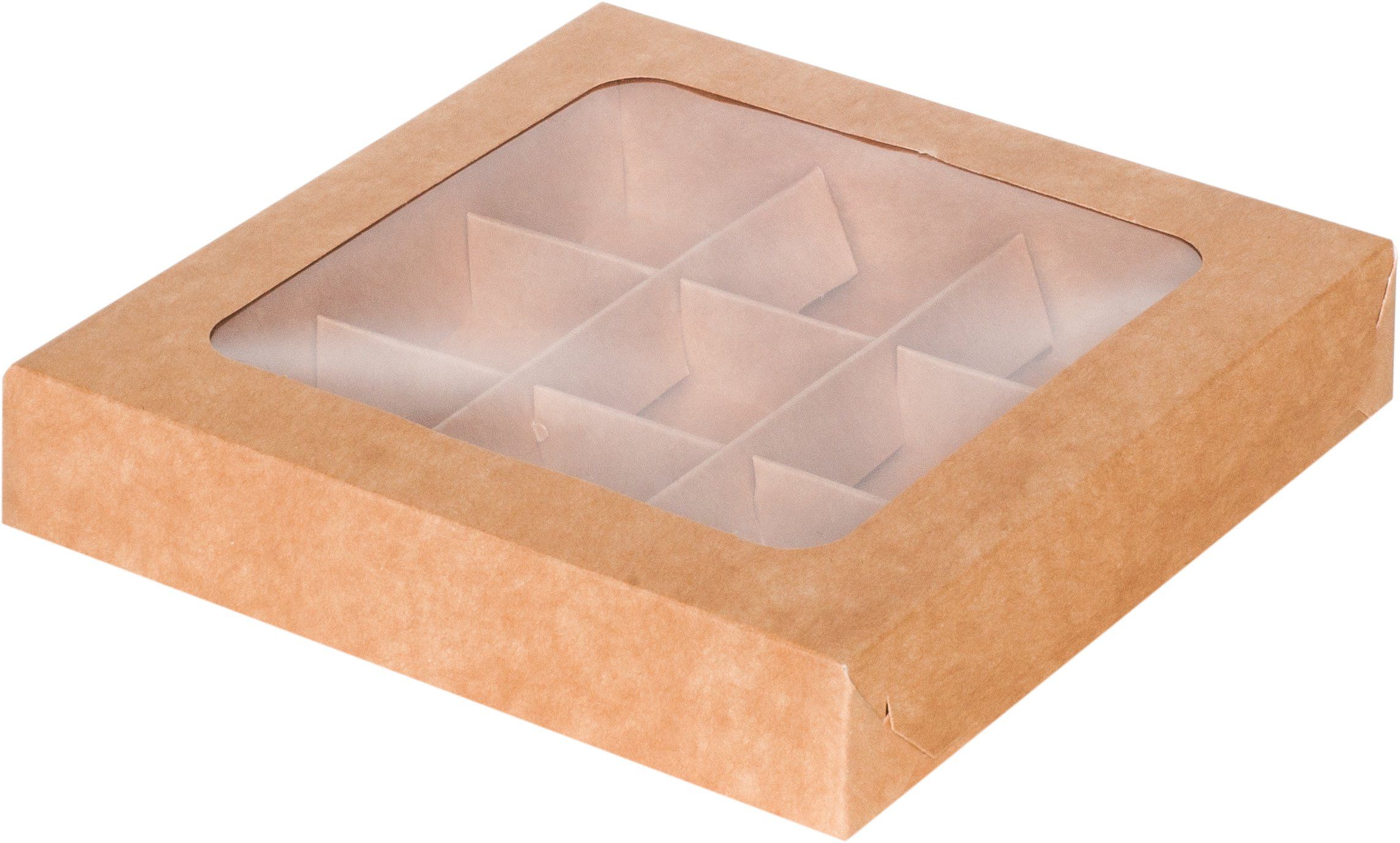 коробка бум. 155х155х30 для 9 конфет крафт с окном