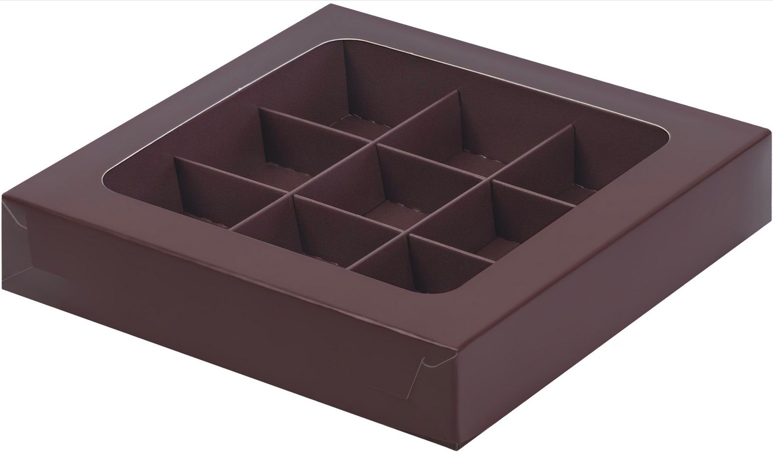 —коробка бум. 155х155х30 для 9 конфет шоколад матовая с окном