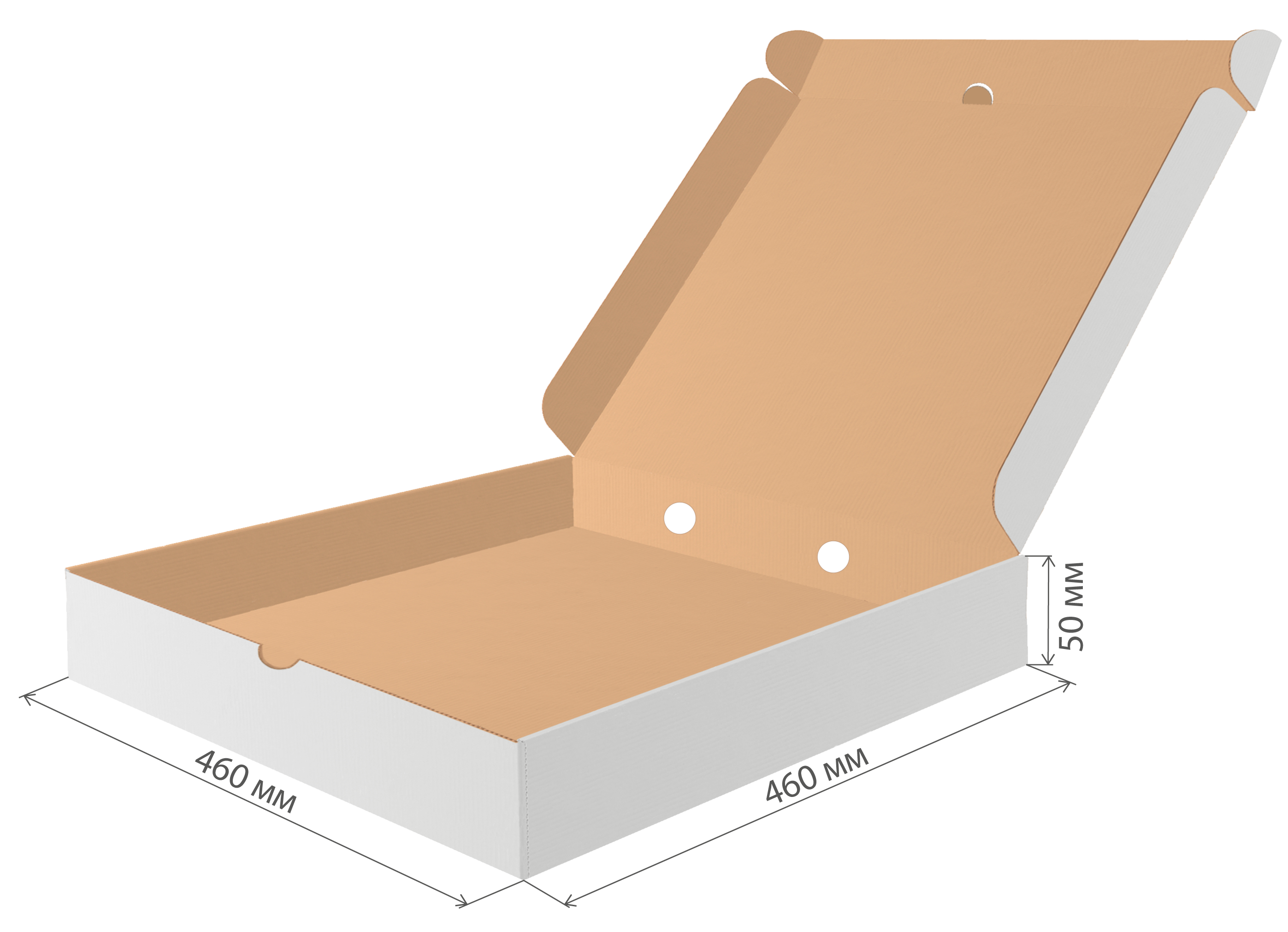 коробка под пиццу гофрокартон 460х460х50 бел/бур/25