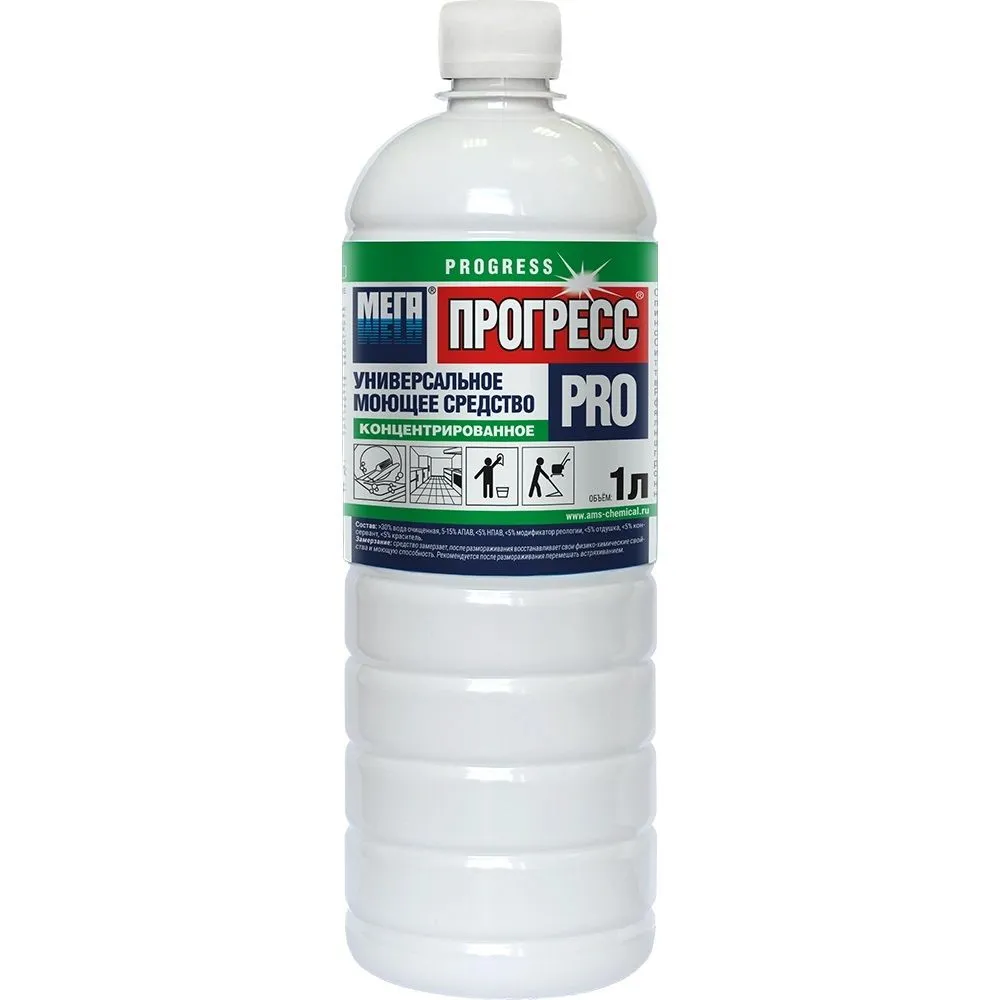 Моющее средство «Мега Прогресс ПРО» 1 л универсал — сильное, но при этом нейтральное по pH концентрированное средство для всего дома, которое заменяет сразу несколько разных очистителей. Его можно использовать и как средство для посуды, и как универсальный очиститель для кухни, ванной и пола.
