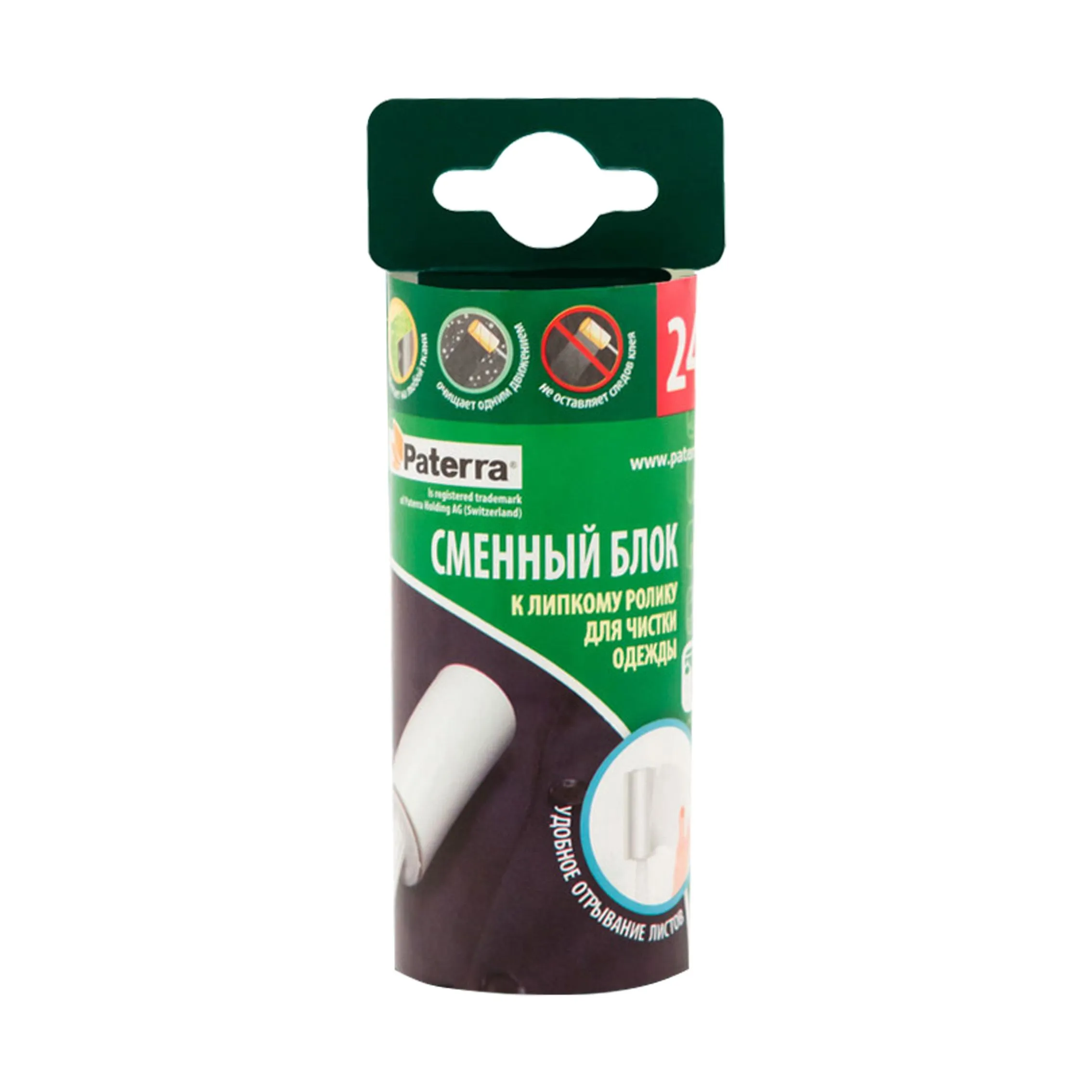 Ролик собирает грязь одним движением по ткани. Клей не оставляет следов на ткани. Ролик позволяет производить легкую замену использованного блока на новый.