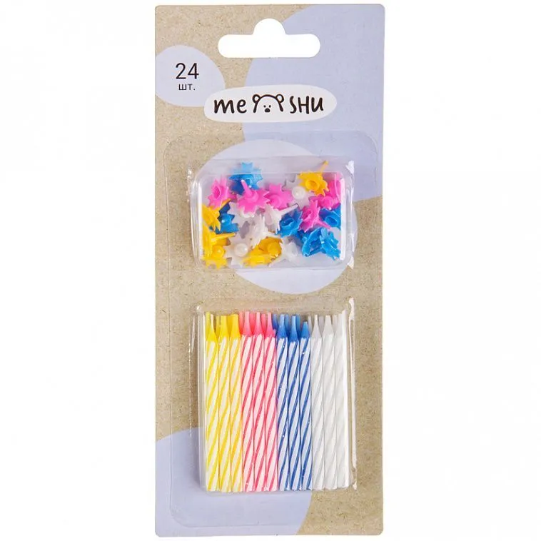 Эти разноцветные свечи с подставками в комплекте станут прекрасным украшением праздничного десерта.