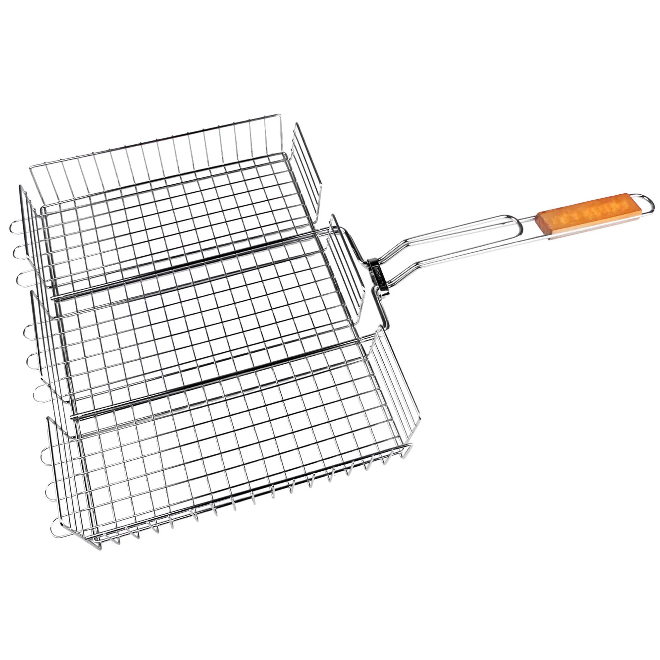 Решетка-гриль имеет деревянную ручку .Рабочая поверхность жаропрочная, не деформируется при нагревании, а также вы легко удалите с нее остатки пищи. Решетка-гриль подходит для жарки мяса, рыбы, морепродуктов и овощей на мангале.
