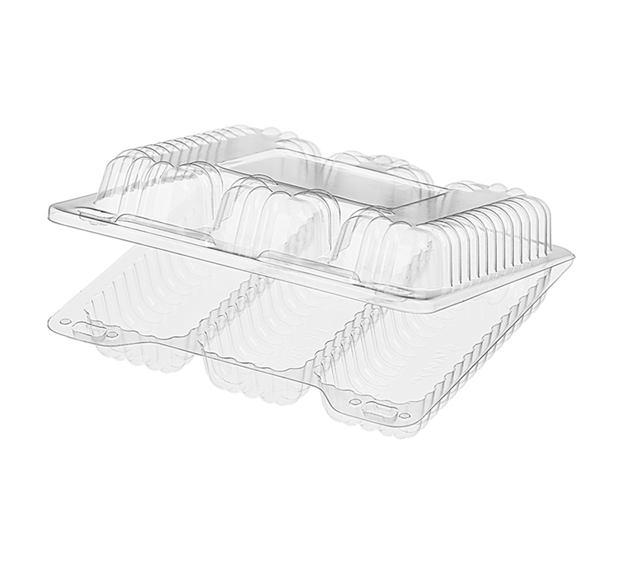 Контейнер-ракушка РК-28С3 предназначен для фасовки пирожных-эклеров и узких прямоугольных пирожных. Количество секций 3.