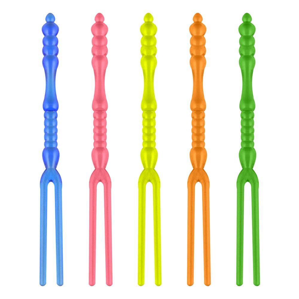 Длина 110 мм. Декоративные пластиковые вилочки для канапе. Используются при сервировке банкетного стола, служат дополнительным украшением стола и придают сервировке праздничное настроение.