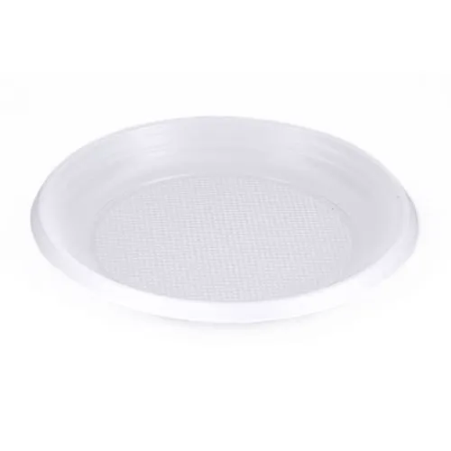 Одноразовые тарелки изготовлены из высококачественного пластика. Материал экологически безопасен, не выделяет токсических веществ при взаимодействии с горячей пищей.  Предназначены для сервировки горячих и холодных блюд. Диаметр 170 мм