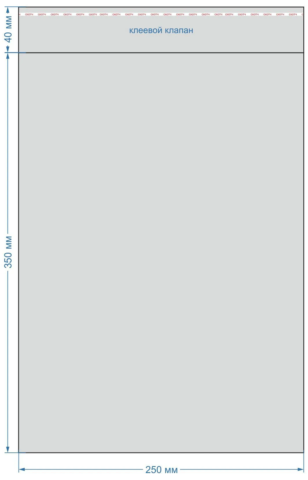 Размер пакета: 250х350 мм, с клеевым клапаном 40 мм. Толщина: 25 мкм. В упаковке 100 штук.