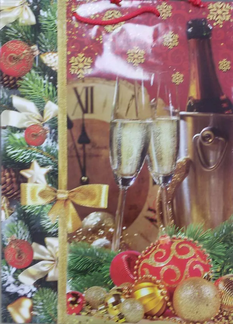 Бумажный ламинированный пакет имеет красивый рисунок, благодаря чему подойдет для преподнесения новогодних подарков.